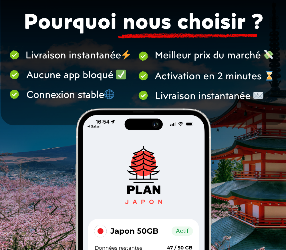 Our eSIM is specially designed for Japan, with a fast and stable connection on the best networks. No apps are blocked: TikTok, banking apps, streaming⊠everything works. The prices are unbeatable and allow you to have internet in Japan without breaking the bank. Ideal for traveling connected, without surprises.